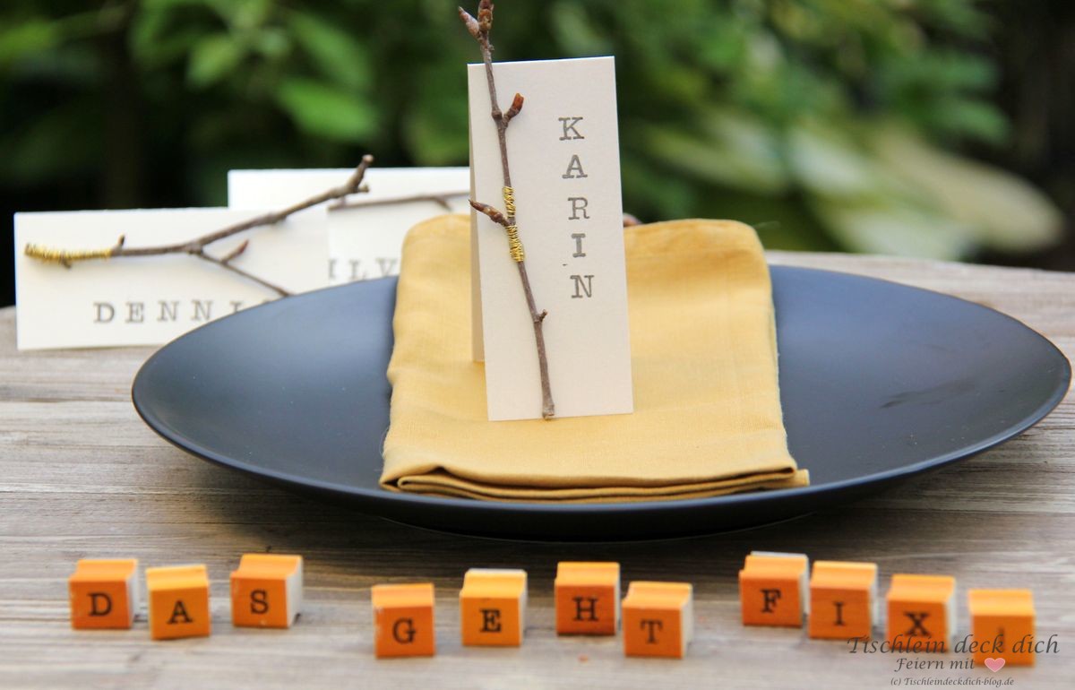Simpel und einfach, eine tolle easy Idee. Ich finde Tischkarten nicht nur praktisch um die Gaeste mal zu mischen, sondern vor allem weil ich es selber als etwas Besonderes empfinde wenn da mein Name drauf steht. Danke fuer die Inspiration.