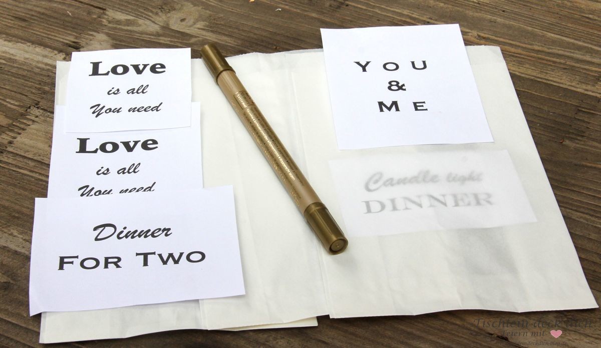 Im Vordergrund stehen sollten heute meine leuchtenden Butterbrottüten mit romantischen Botschaften.