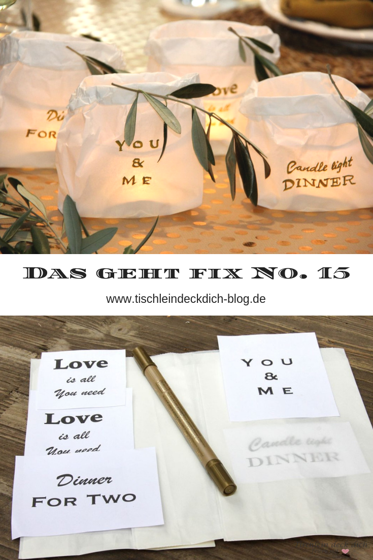 Aber alle anderen Dekorationsmaterialien für meine schnelle Tischdekoration für Zwei hatte ich da.