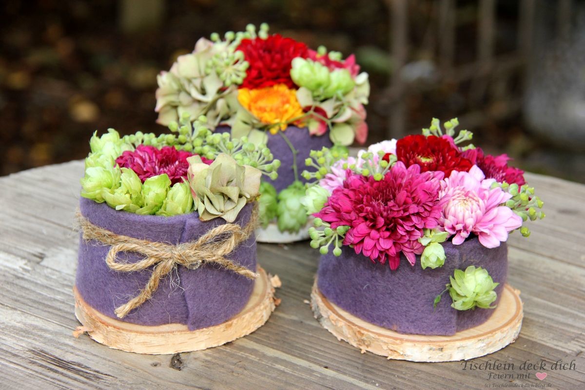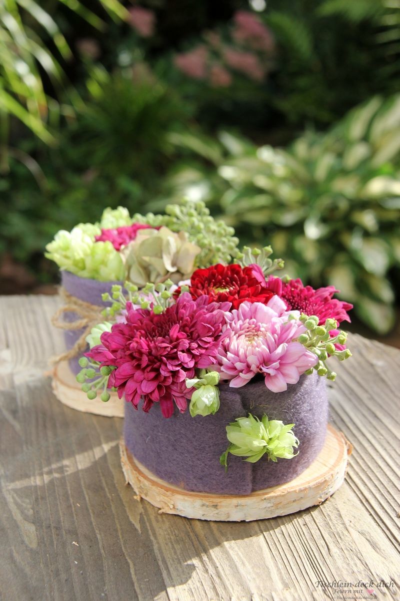 Hallo! Schön, dass Du wieder dabei bist. Heute habe ich Blumentörtchen für Dich. Ein herbstliches Schmanckerl garantiert ohne Kalorien. Sie sind schnell und einfach gemacht auch ganz ohne floristisches Geschick.