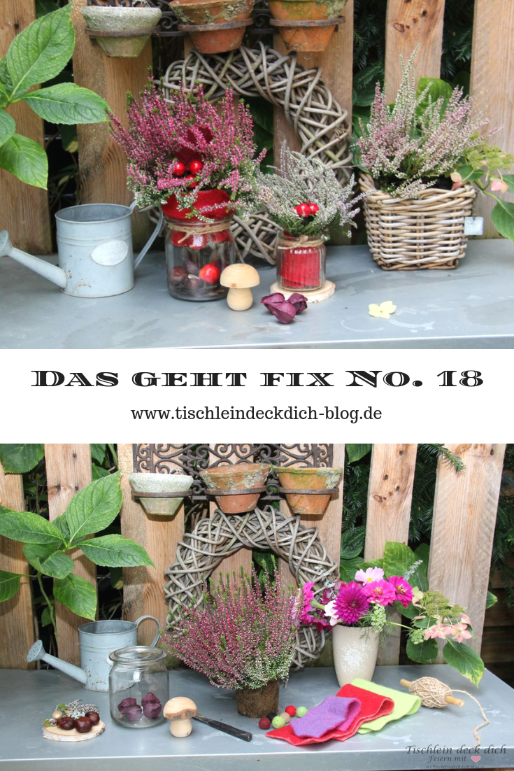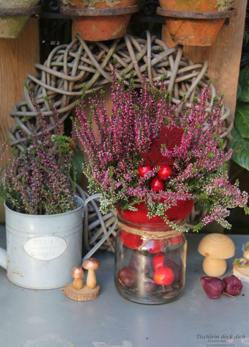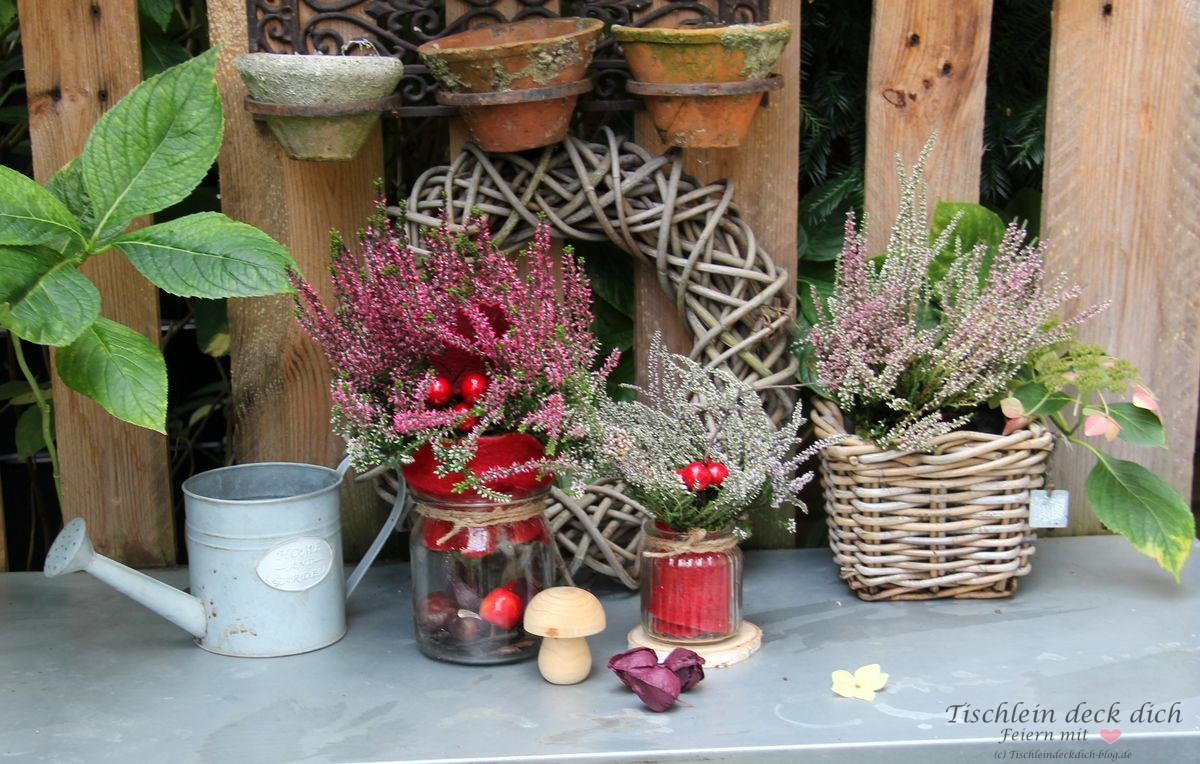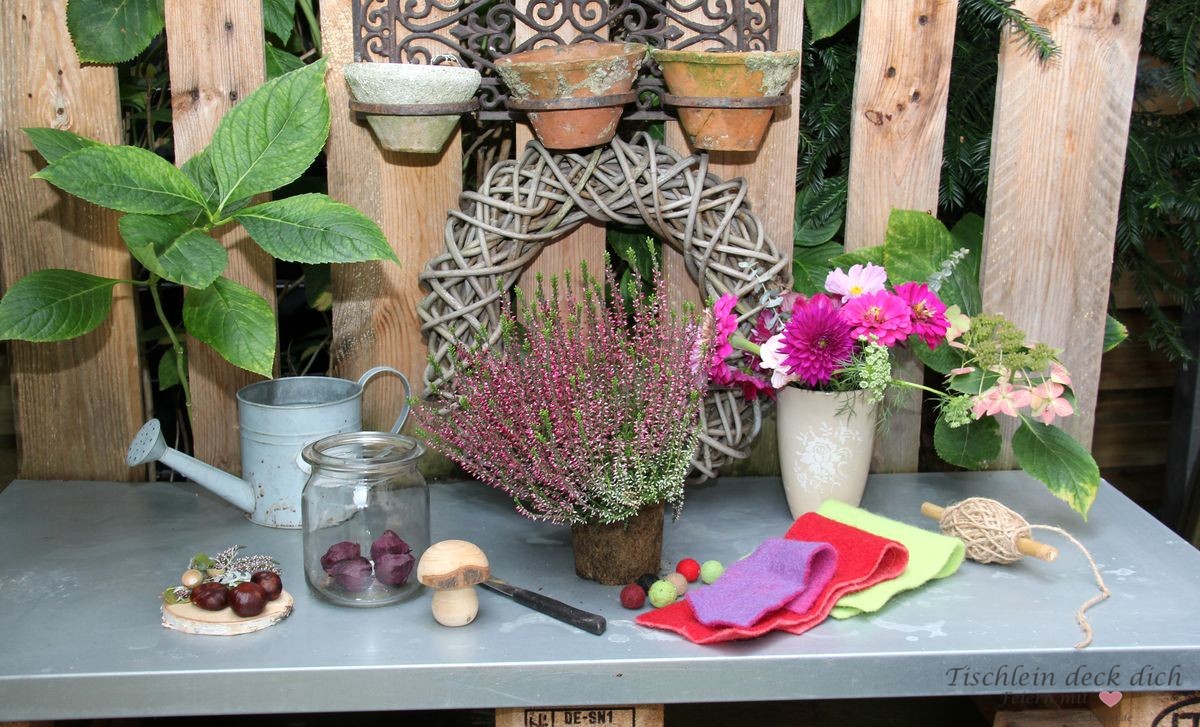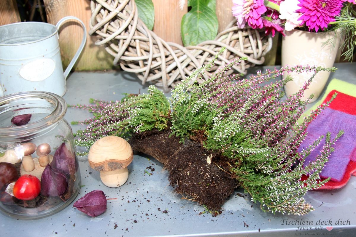 Beim Einkauf im Supermarkt lachten sie mich an, die schönen herbstlichen Erikas. Da unser Pflanztisch im Garten eine Verschönerung dringend nötig hatte, dachte ich sofort: Jetzt ist die beste Zeit für eine Herbstdeko mit Heidekraut. Schwupps, schon waren die hübschen Pflanzen im Einkaufskorb. Da meine Heidekrautdeko so fix gemacht war, dachte ich, begleite ich die Verschönerungsaktion unseres Pflanztisches doch gleich mal mit der Kamera.