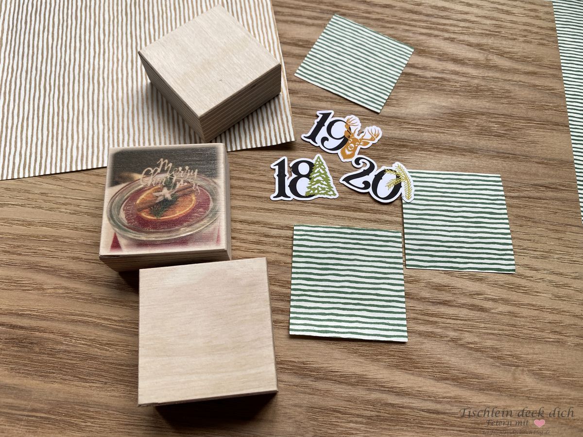 Als ich die 5×5 cm großen Mini-Holzblöcke beim Durchstöbern des Shops von MEINFOTO entdeckte, war ich sofort verliebt. Ebenfalls sofort wusste ich – daraus möchte ich einen Adventskalender gestalten. Los geht’s!