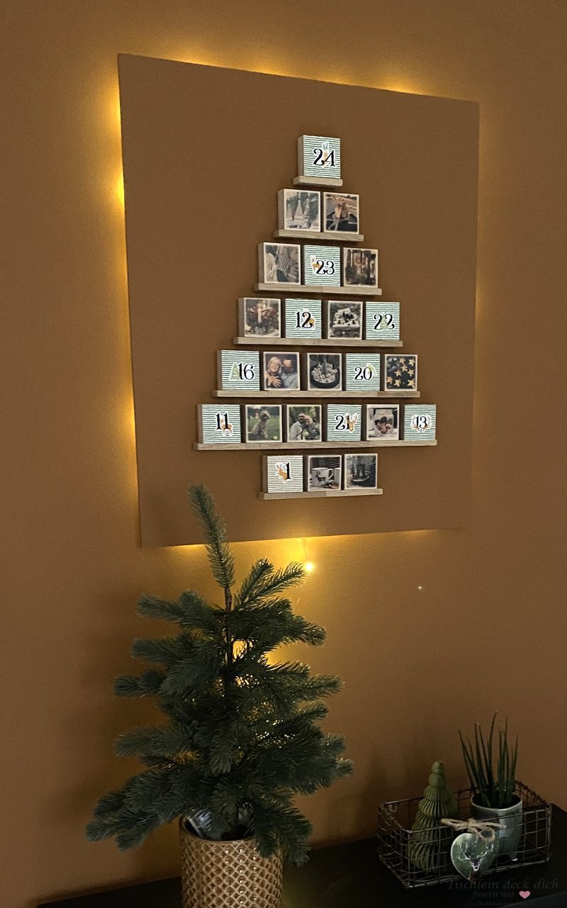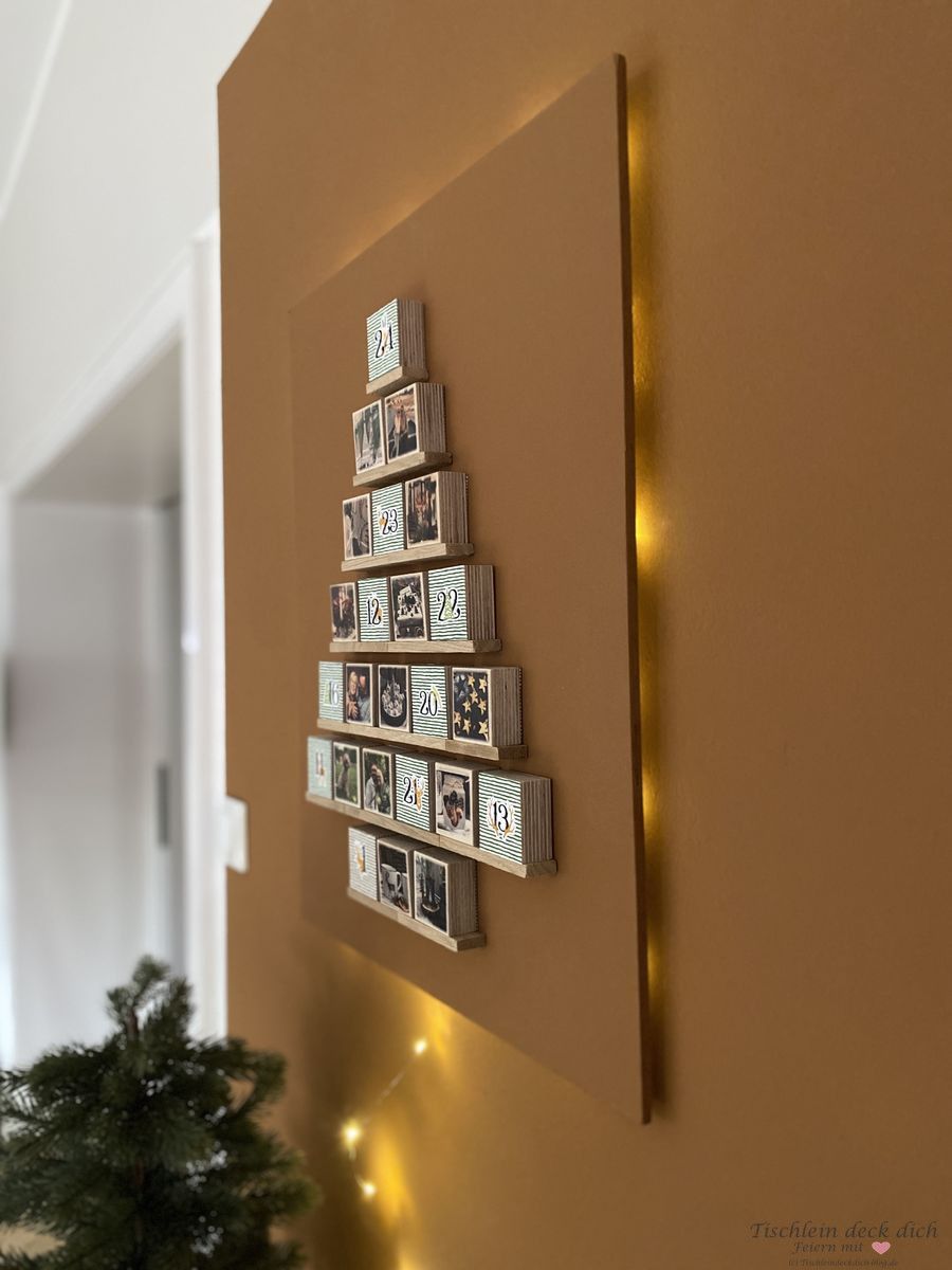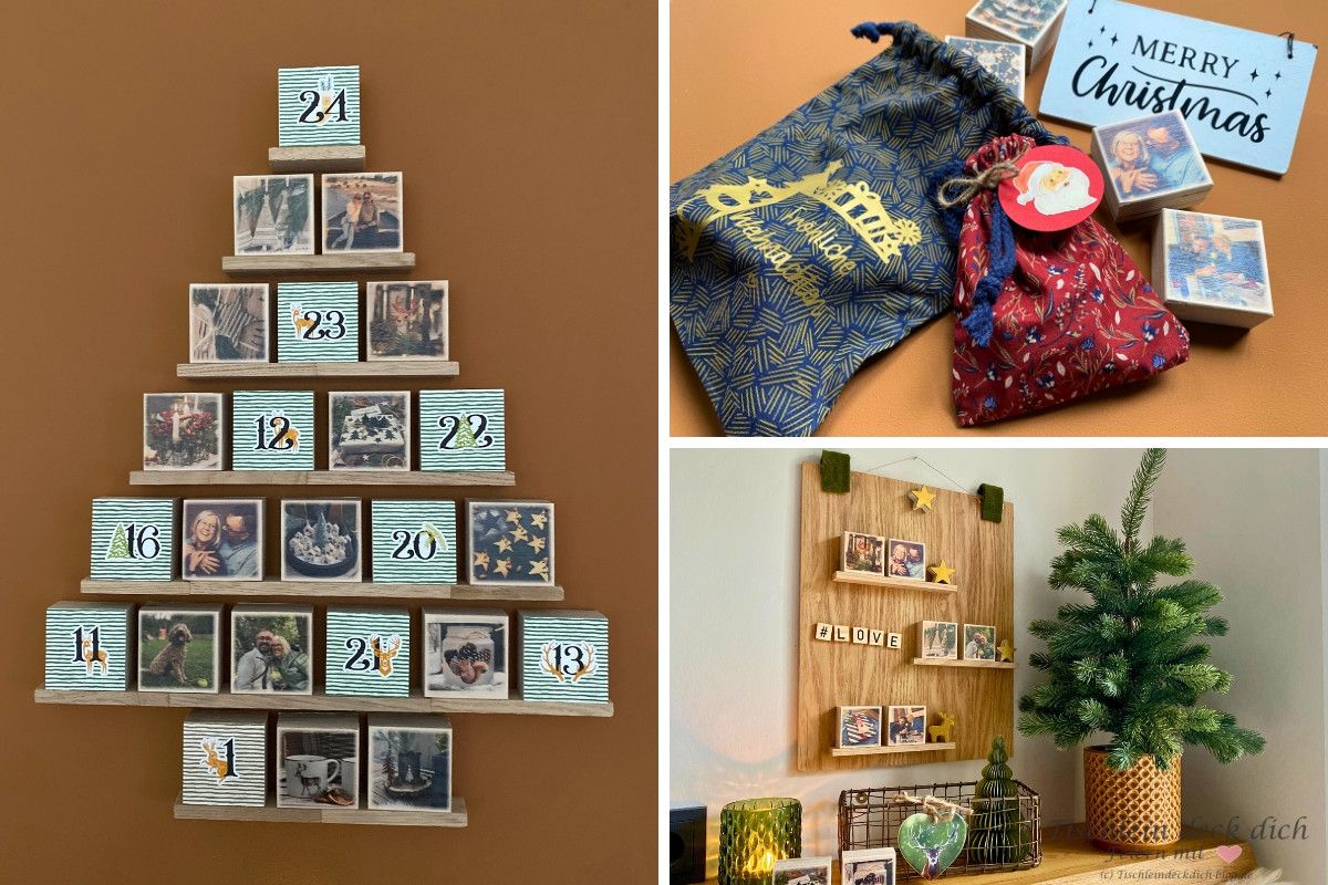 Wenn Heiligabend gekommen ist und der 24. Mini-Holzblock umgedreht wurde, kann dein Adventskalender zum ganz persönlichen Fotogeschenk werden. Die Verpackungen für einzelne Fotoblöcke bereitest du dir idealerweise im Vorfeld schon zu. So hast du am 24.12. damit keine Arbeit mehr.