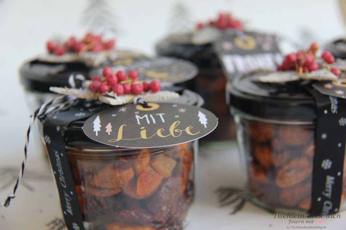 Der Adventskalender für meinen Schatz in diesem Jahr bestand aus 24 Gläsern hübsch verziert und befüllt. Tag für Tag wurde ein Glas geleert und es konnte eine neue Bestimmung bekommen. Gefüllt mit riiichtig leckerem Studentenfutter (Rezept gibt’s auch) wurde ein Gastgeschenk für meiner Freundinnen am Adventssonntag daraus.