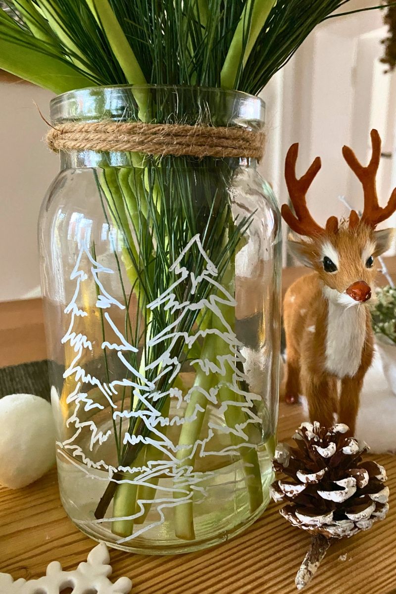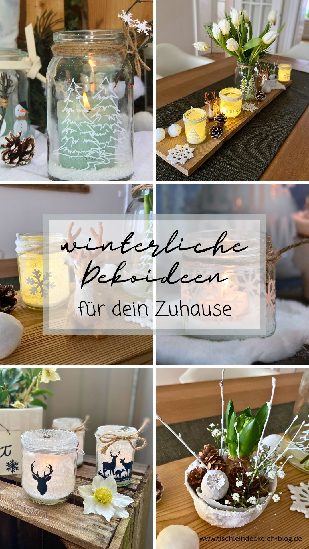 Ich liebe Gläserupcycling. Bereits 2020 hatte ich Gläser sehr winterlich dekoriert. Eins davon ist übrig geblieben und wird jedes Jahr wieder aus dem Keller hochgeholt.