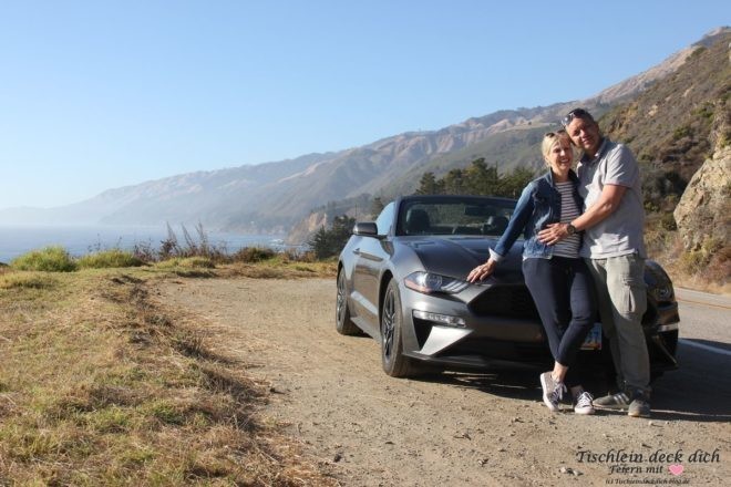 Schon bei der Buchung unserer Urlaubs haben wir uns für das Cabrio von Ford Mustang entschieden. Sicher die richtige Entscheidung. Weil es oft sehr heiß war, musste das Verdeck öfter auch mal geschlossen bleiben und wir haben die Klimaanlage vorgezogen. Aber jetzt auf dem Highway No. 1, der Pacific Coast, war diiie Cabriozeit gekommen.