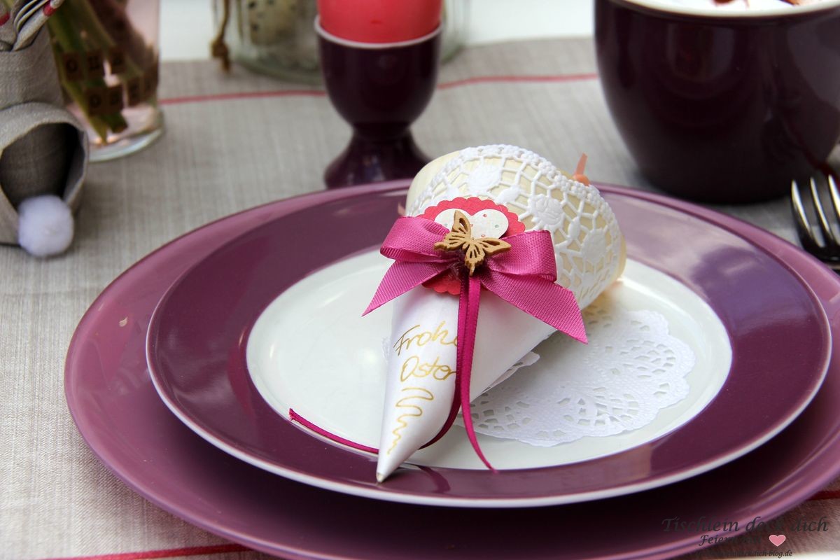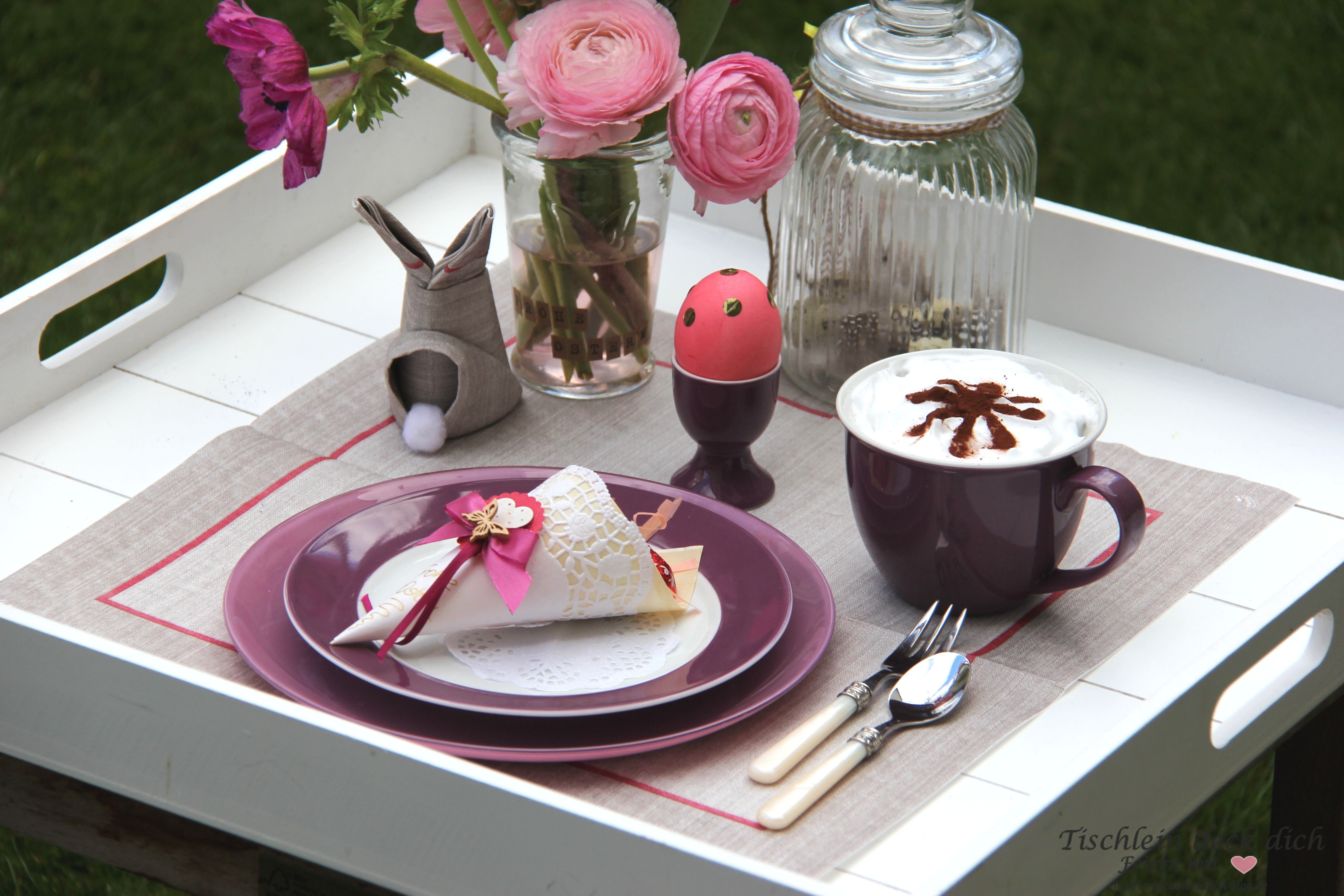 Ein Frühstück im Bett, das gehört zu unserem Standardprogramm am Wochenende. Gemütlich Zeitung lesen, ein wenig in schönen Blogs stöbern und seinen Milchkaffee mit frischen Brötchen genießen. Mmmmh, so geht’s. An diesem Feiertag habe ich meinen Mann noch mit einem kleinen Ostergeschenk überrascht, sozusagen schon mal ein kleiner Vorgeschmack auf den Ostersonntag 😉 . Die kleinen Tüten aus Tonpapier und Tortenspitze sind schnell gebastelt und gefüllt. Für die Verzierungen gibt es 1000 und 1 Idee. Am liebsten wäre ich gleich in die Massenproduktion gegangen. Aber falls ihr noch auf der Suche nach einem kleinen Gastgeschenk seid, sind die Tütchen doch eine wunderhübsche Idee.