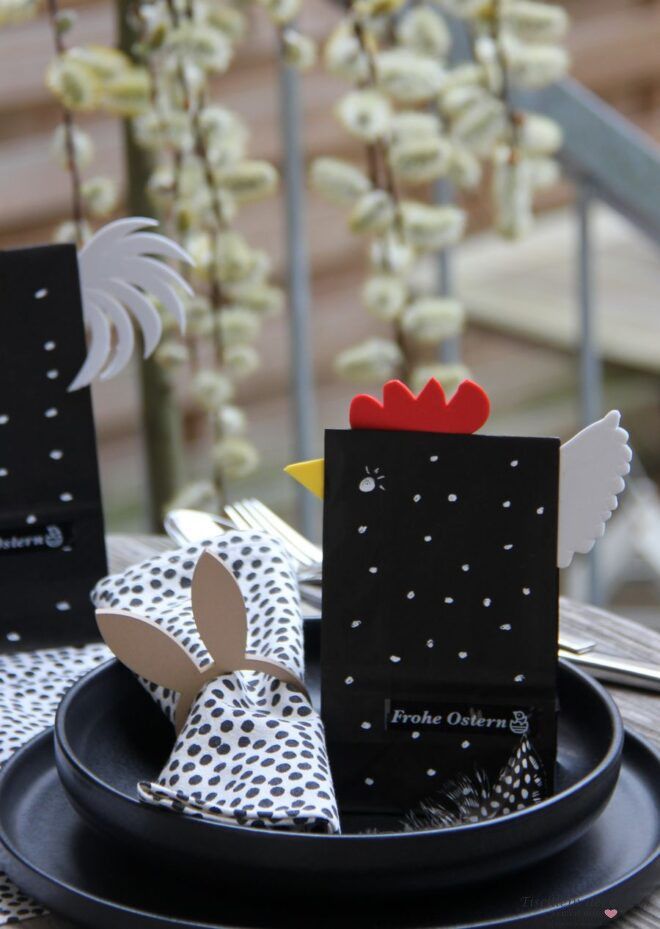 Der Bloggeburtstag 15 Jahre Tischlein deck dich ist vorbei. Du hast doch bestimmt mitgefeiert, oder? Nun geht es hier weiter mit dem ersten österlichen DIY für dieses Jahr. Ich bastel mit dir lustige Ostertüten Hahn und Henne. Schwarze Bodentüten habe ich noch reichlich. Übrig geblieben sind sie von meinem DIY zum Valentinstag. Da kam mir doch dieses lustige DIY mit verrückten Hühnern und Hähnen gerade recht.