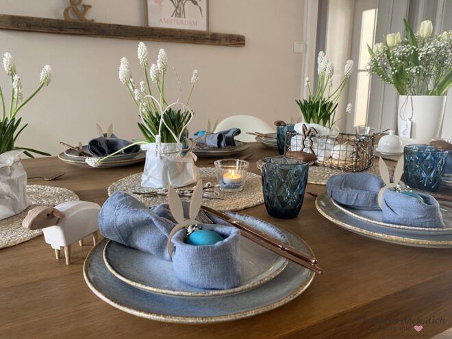 Ich hoffe, dir gefällt meine heutige Tischdekoidee für Ostern? Falls blau nicht zu deinen Lieblingsfarben gehört, lässt sich die Dekoration in jeder anderen Farbe umsetzen.