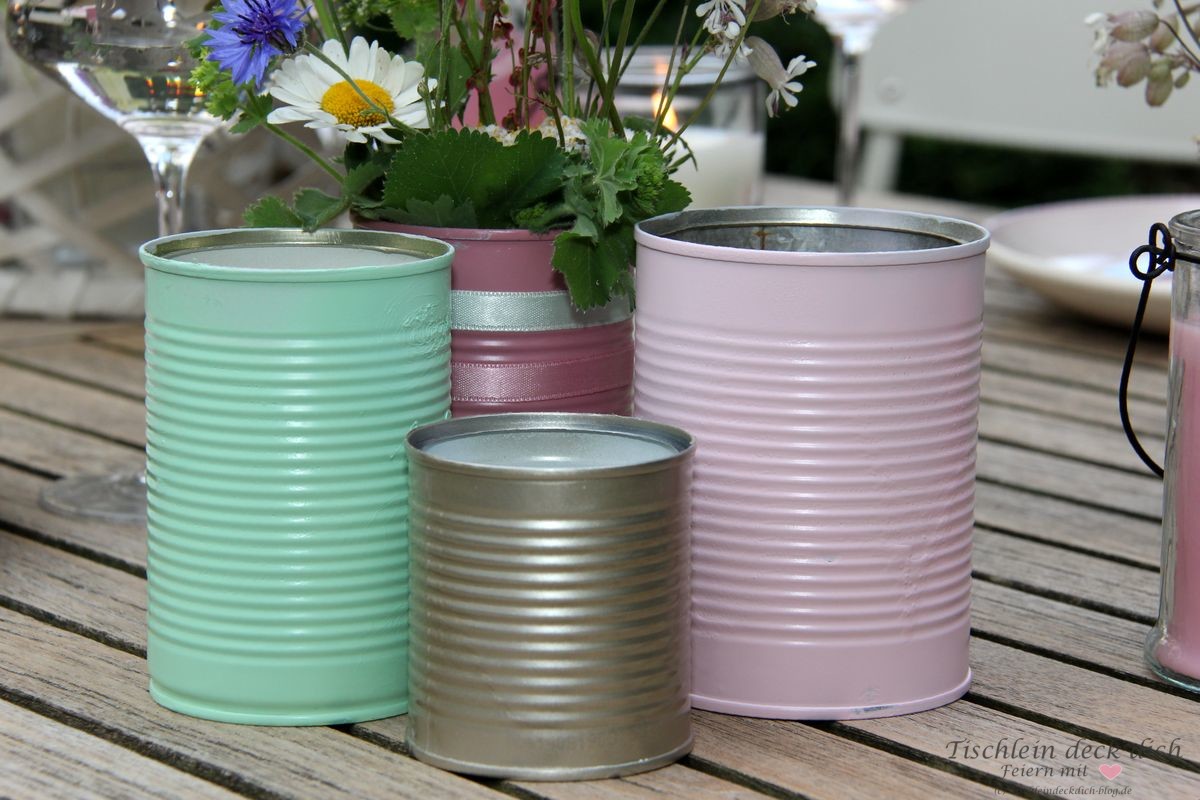 Aus alten Konservendosen werden tolle Vasen für bunte Sträuße
