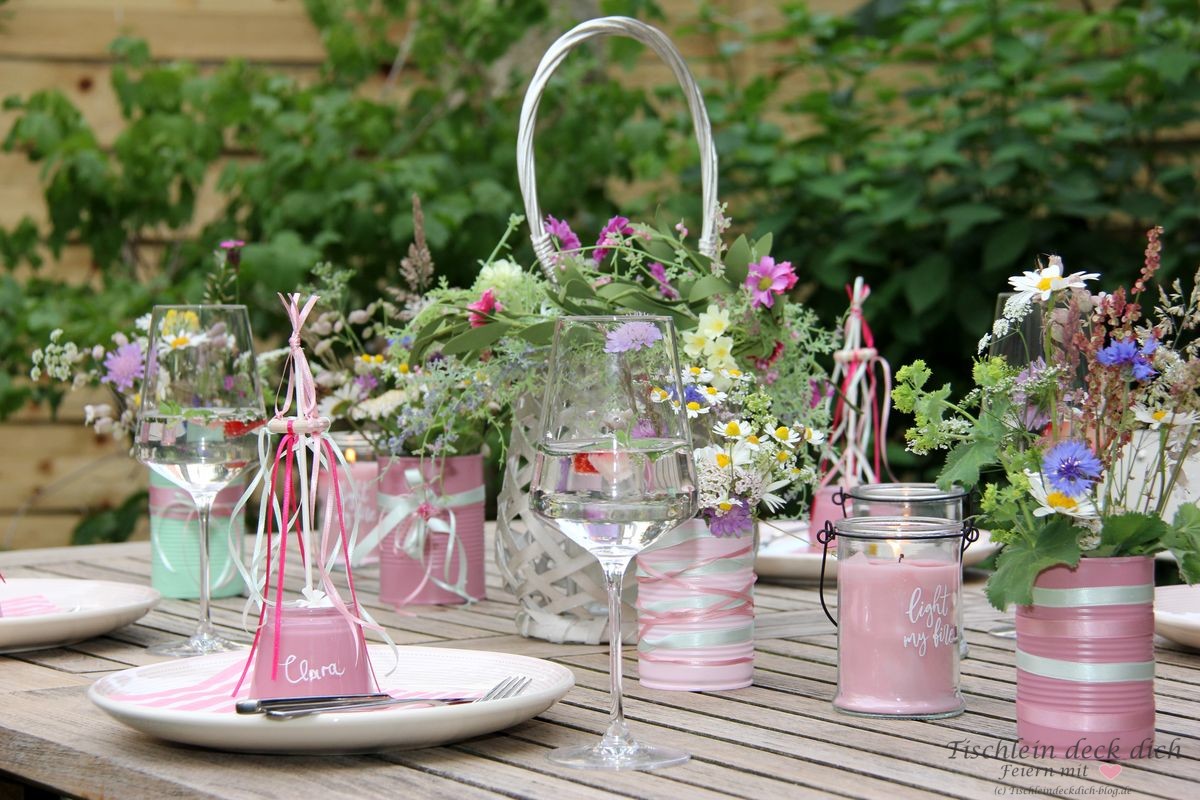 Die Tischdeko ist dir wirklich schön gelungen! So frisch, leicht und sommerlich, da möchte man sich gleich mit an den Tisch setzen! 🙂