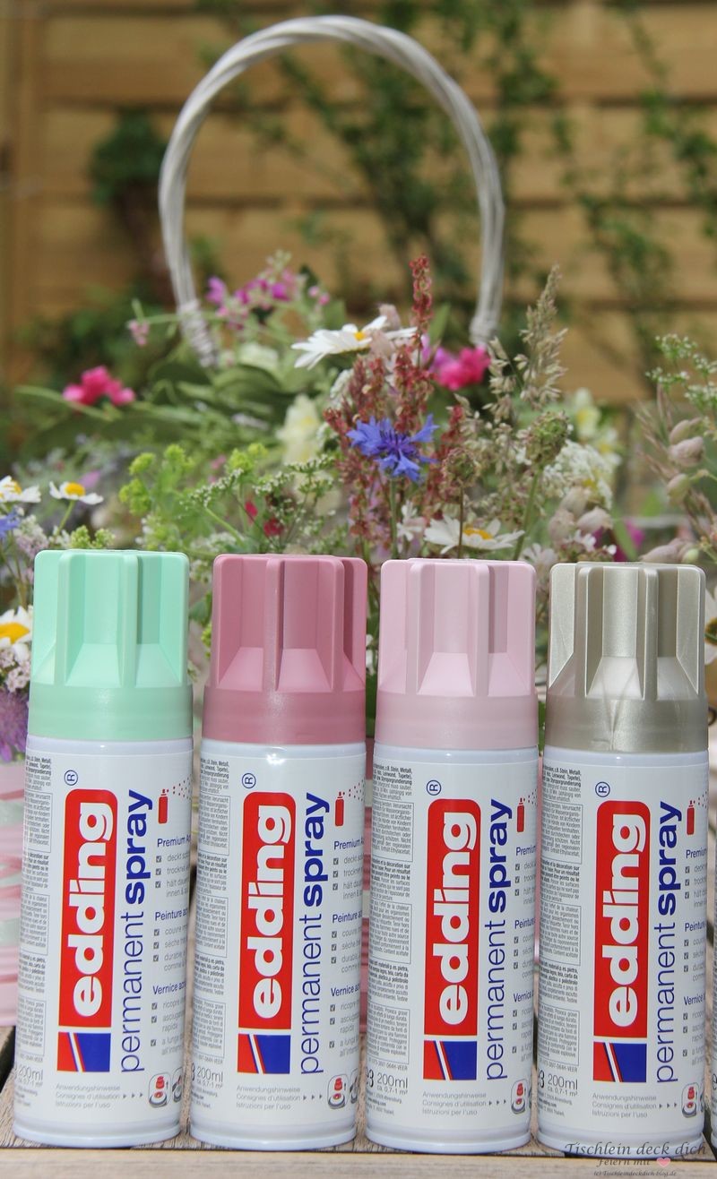 ich würd damit meine grauen fast leblosen Gartenstühle einsprühen. Der Garten ist bunt. So sollten die Gartenmöbel auch sein. Und ich würde ich der Küche meine Küchenhelfer die Griffe einsprühen damit auch mal da Farbe ins Geschehen kommt. Lieben Dank. Das ist eine tolle Idee mit den Edding Sprays. Ich wäre gespannt und würd gern vorher Nacher Fotos dann machen. Das mit der Tischdeko ist auch sehr toll. Zur Einschulung dieses Jahre würd ich das auch machen wollen. Sehr sehr schick